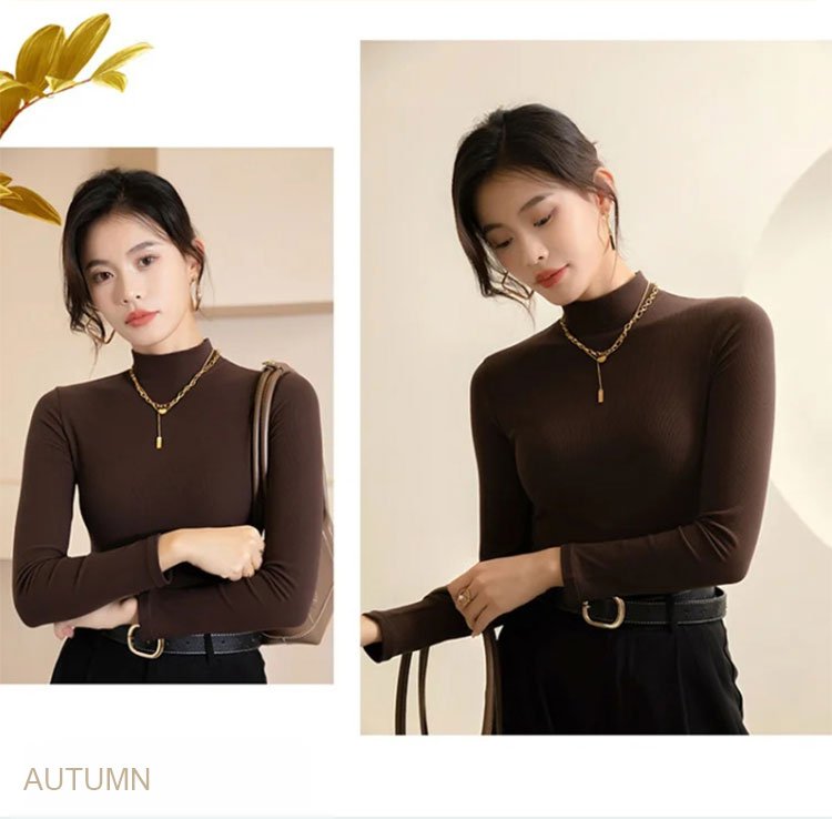 Small stand collar solid color versatile bottoming shirt
